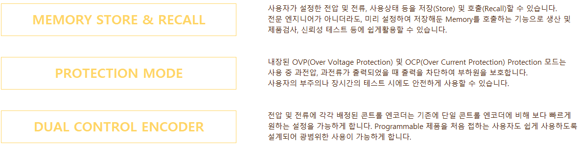 · Factory Mode(User Memory, Last State, Auto Cursor, Auto Key Lock    등) 12가지 제공