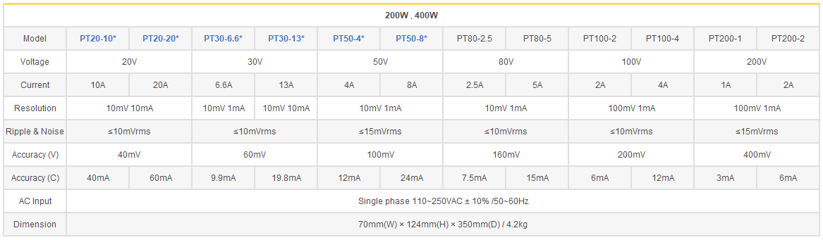 200W, 400W : 70mm(W) × 124mm(H) × 350mm(D) / 4.2kg