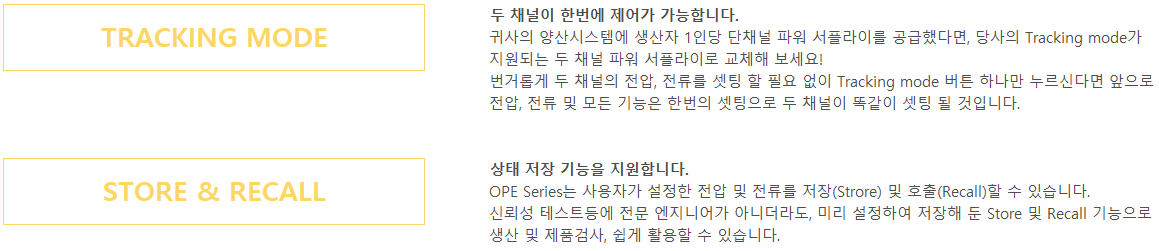· Tracking Mode 기능 제공(2개 출력 동시제어)