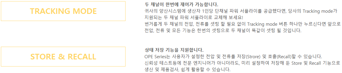 · Tracking Mode 기능 제공(2개 출력 동시제어)