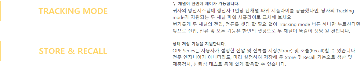 OPE-DI Series는 고효율의 프로그래머블 직류전원 공급장치로써 SCPI (Standard Commands for Programmable Instruments) 프로토콜에 준하는 RS-232C 또는 RS-485 통신을 또는 RS-485 통신을 지원하며 Bench-top 뿐만 아니라 19inch Rack에 장착이 가능하도록 설계되었습니다.