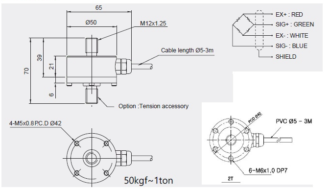 정격용량 (R.C.)50,100,200,500 kgf ,1,2 tf