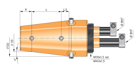핸들용 나사산 : M35x1.5 mm 또는 M40x1.5 mm