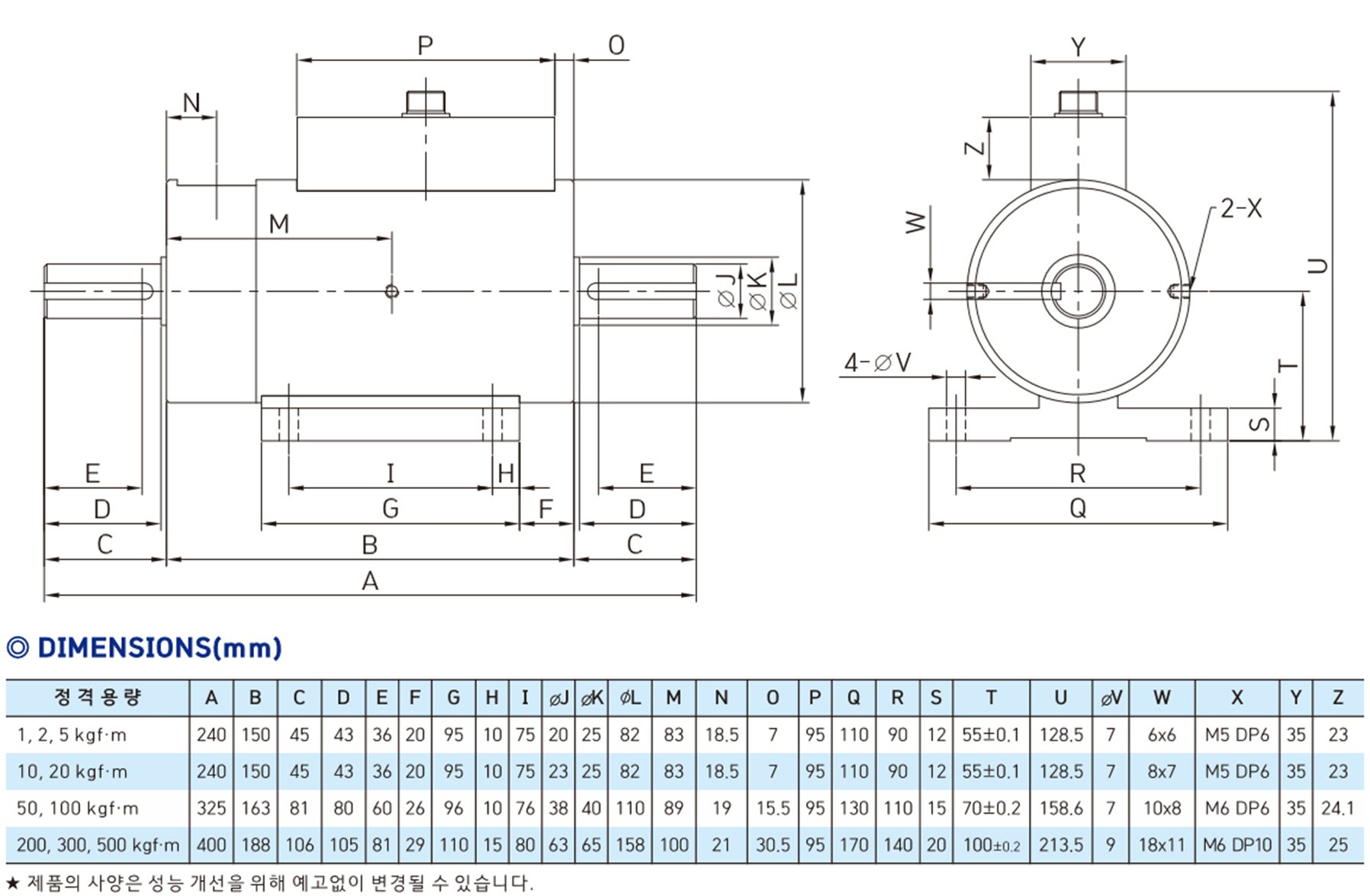 정격용량(R.C.)1,2,5,10,20,50,100,200,300,500 kgf·m