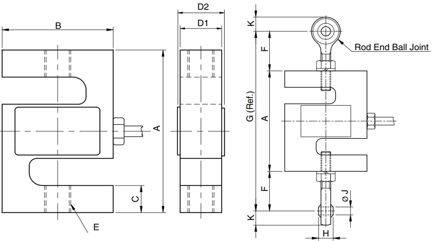 정격 용량A (mm)B (mm)C (mm)D1 / D2 (mm)EF (mm)G (mm)H (mm)J (mm)K (mm)Rod End Ball Joints자중 (kg)