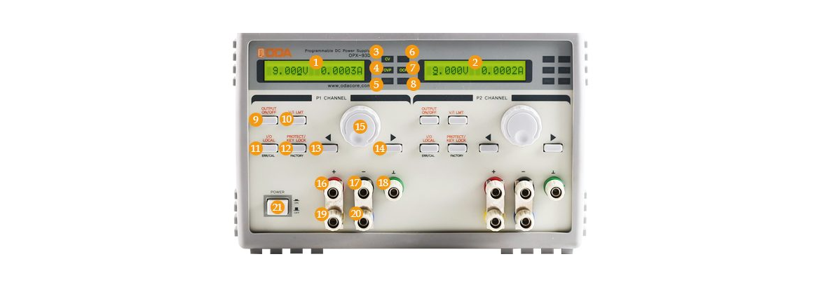 · 듀얼 채널, 각각 1mV/100uA 분해능의 0~9V/0~3A, 5-Digit