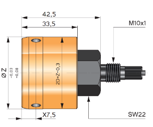 - 측정자높이 자동화용 3POINT , 나사부 M10X1 , 내경사이즈 29.990, 바닥커버장착 , 삽입부 각도 30˚