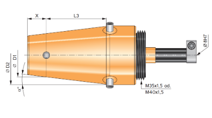 핸들용 나사산 : M35x1.5 mm 또는 M40x1.5 mm
