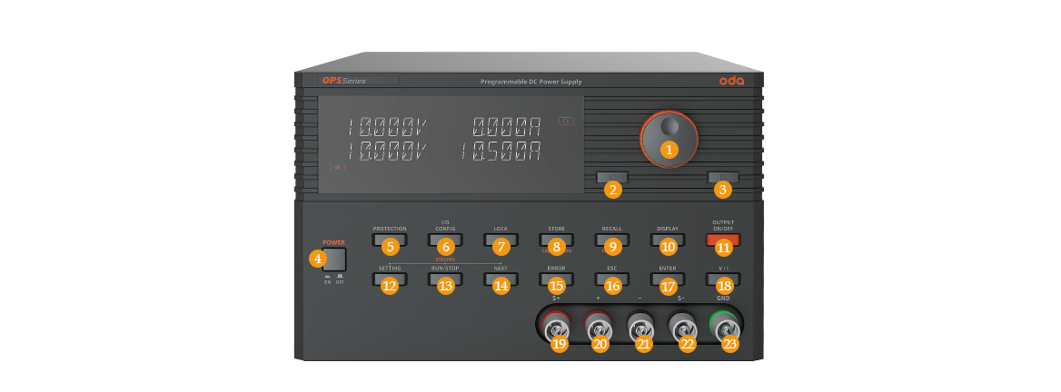 OPS Series는 고효율, 고정밀 Programmable DC Power Supply로 RS232C, GPIB(IEEE-488.2 OPTION) Remote Interface를 통한 제어를 위해 SCPI Protocol을 제공합니다. OPS Series는 사이즈 3U-19inch Half 타입으로 제작됩니다.