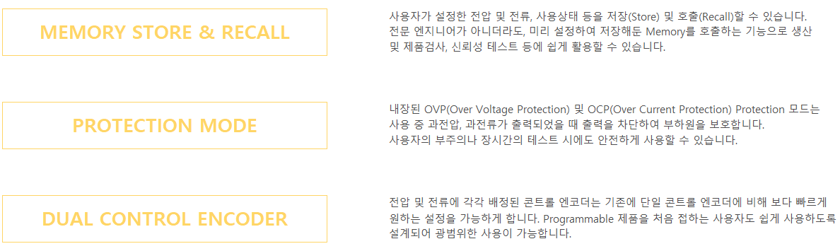· OVP, OCP 보호 모드 제공