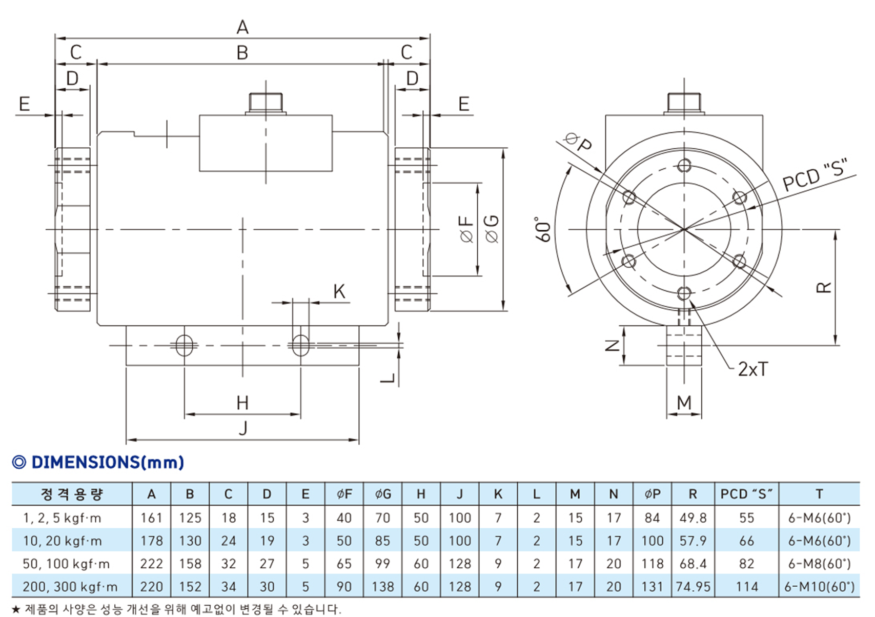 정격용량(R.C.)1, 2, 5, 10, 20, 50, 100, 200, 300 kgf·m